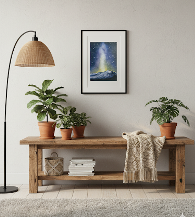Faites entrer l'illustration "Aurore" aux tons bleus profonds chez vous.