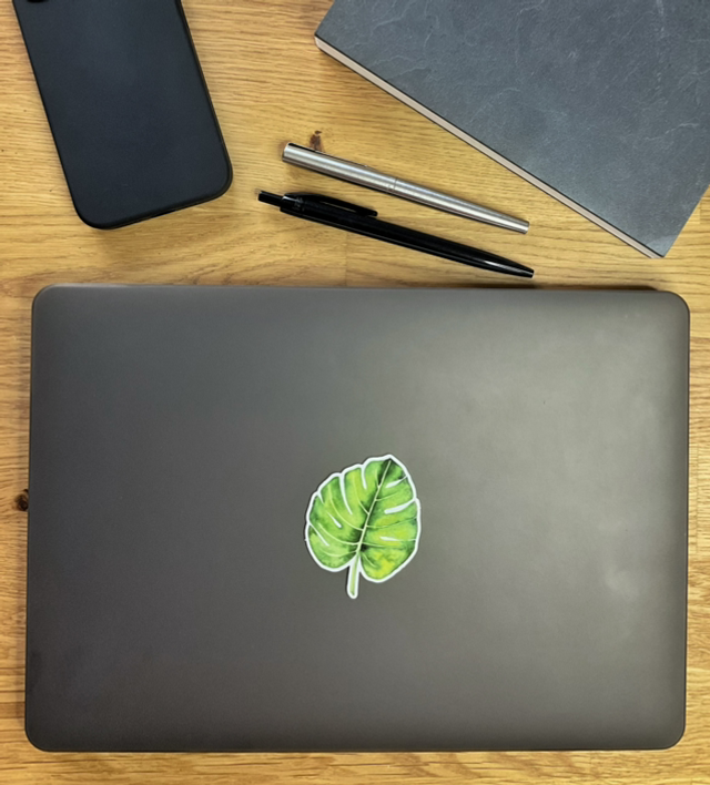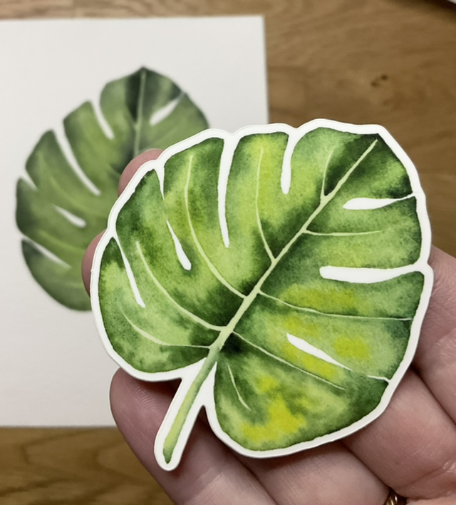 Feuille de Monstera peinte à l'aquarelle, l’imprimé est fidèle à l'original.