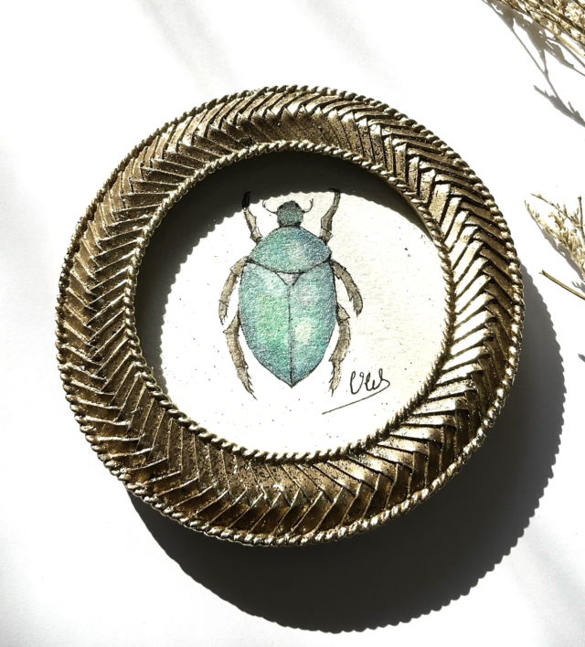 Elle est présentée dans un mini cadre doré raffiné, choisi pour sublimer l’aquarelle et révéler toute sa délicatesse.